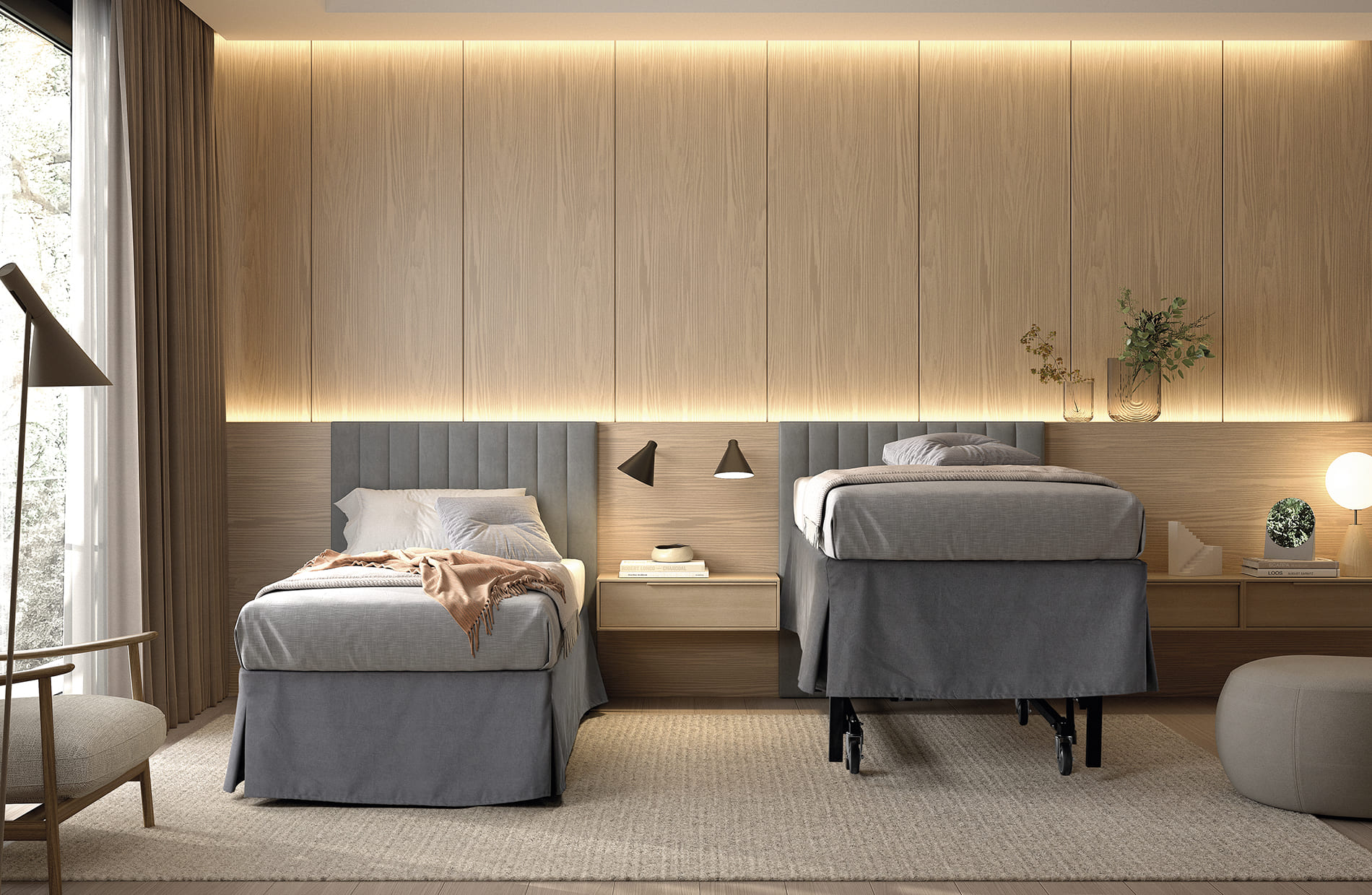 Base tapizada con marco de acero reforzado, tablero de micropartículas y recubierto de fibra. Tejido a elegir