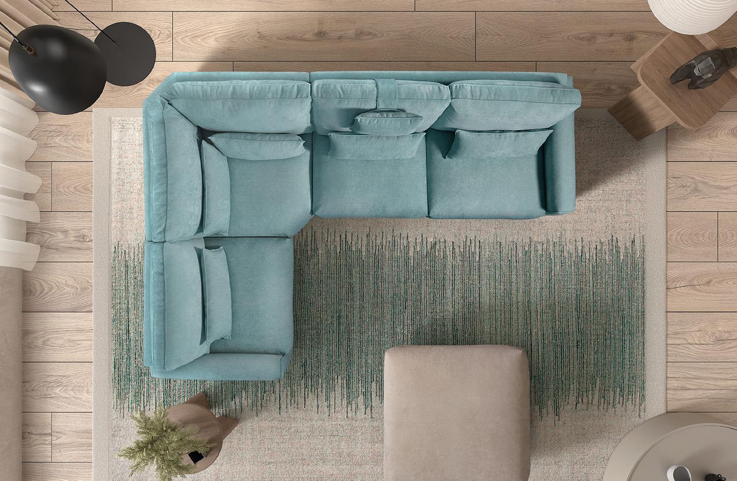 Además puedes añadir puffs o chaiselongue para lograr aún más comodidad y personalización.